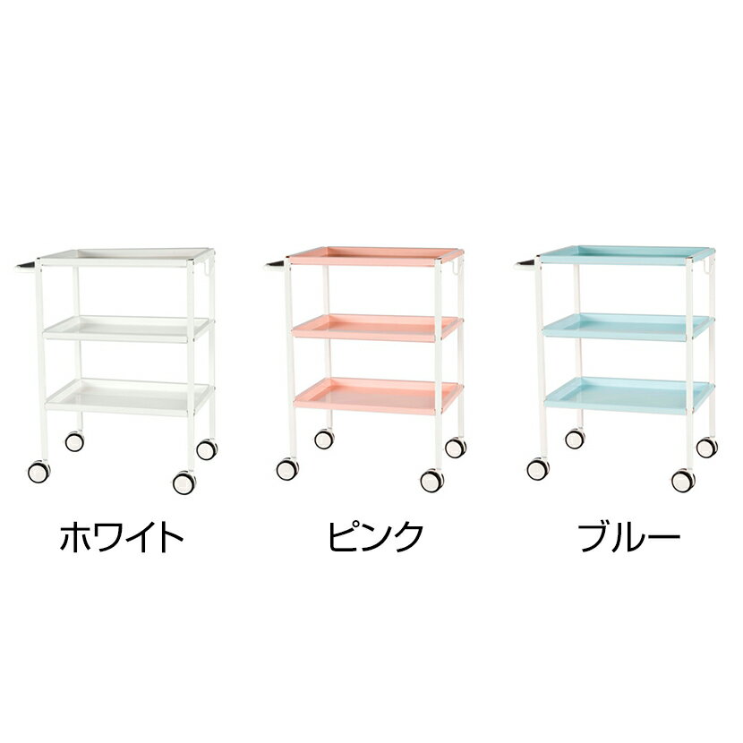 スチールワゴン 3段 キャスター付き 681×404×801 RFWG-ST ワゴン カート スチール サロンワゴン 681mm 404mm 801mm ハンドル付き フック付き ホワイト ピンク ブルー キャスター 収納ワゴン ラック 美容室 病院 ネイルサロン クリニック