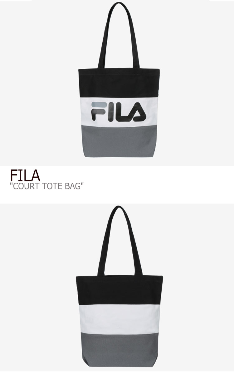 フィラ トートバッグ FILA メンズ レディース COURT TOTE BAG コート トート バッグ BLACK ブラック PURPLE パープル DARK GREEN ダークグリーン DARK RED ダークレッド FS3BCC5302X バッグ FILAのロゴがポイントになっているシンプルなデザインのエコバッグ 綿100%の素材で普段使いにぴったりです。